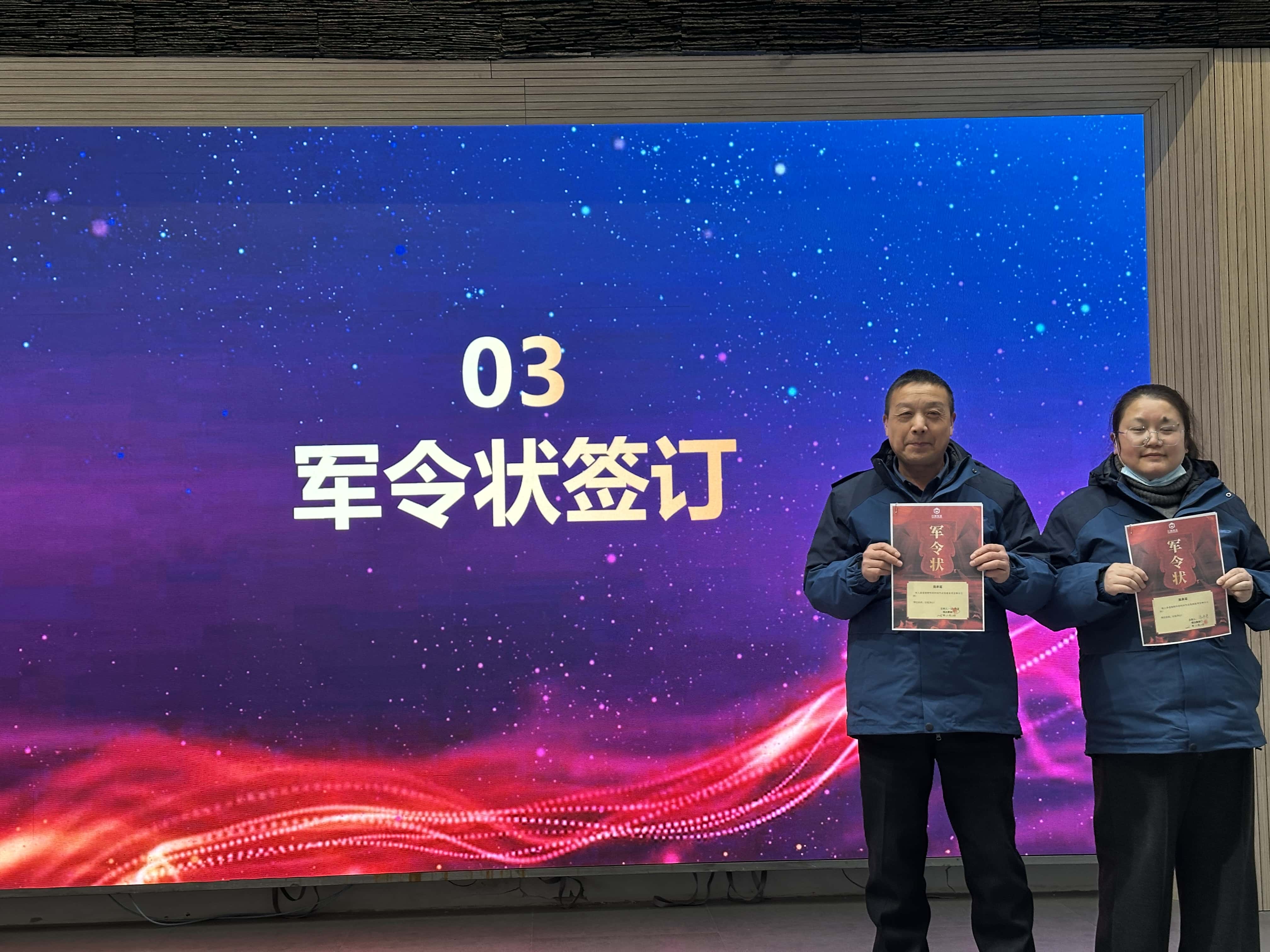 随后,预决算部门员工上台发言,详细阐述了目前在审项目的数量,以及 2025 年预计完成的项目数量,并明确了每个项目的完成时间节点。发言结束后,预决算部门员工当场签下军令状,展现了坚决完成任务的决心和勇气。