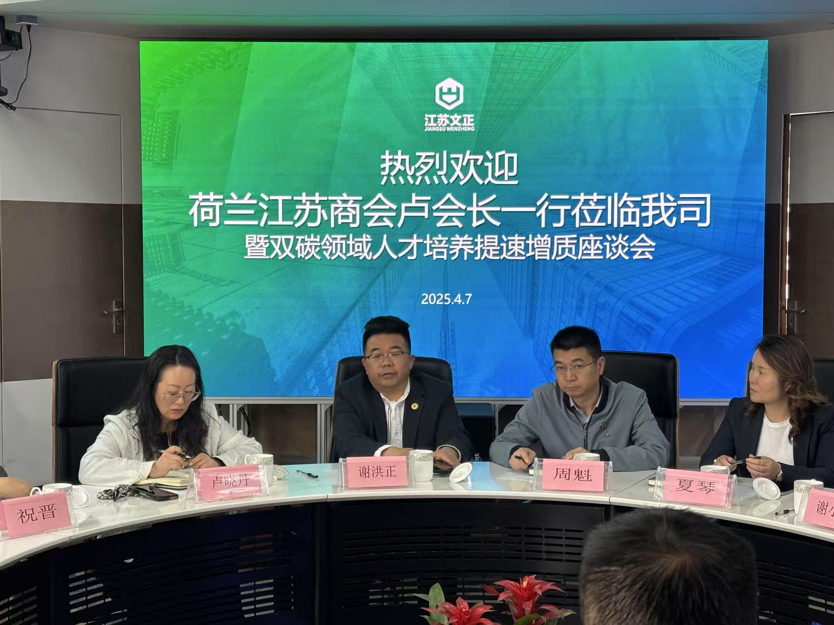 近日,荷兰江苏商会及南京节能环保产业协会一行到访星空·体育,围绕“双碳人才培养提速增质”主题展开深度交流座谈会。荷兰江苏商会卢晓丹、夏琴,南京市节能环保产业协会秘书长周魁、企业部主任祝晋,宜兴科宇环保陈岩,民进苏州市委会调研处副处长谢小赞,安徽九辰环境陈海峰、侯瑞琪,中川环保总经理廖晓应,无锡泽邦环保科技总经理王婧,Rai China展览侯菁菁、华辰阳,星空·体育董事长谢洪正共同出席了本次会议。